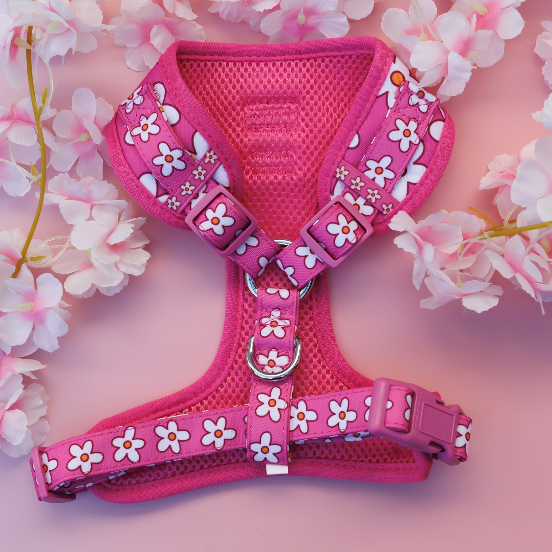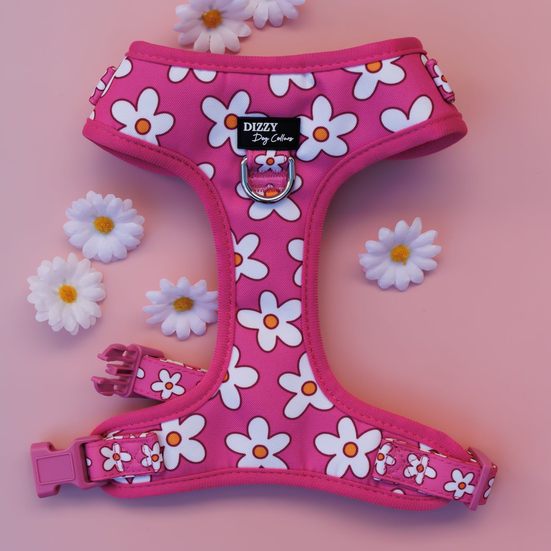 DOG HARNESS | Darling Daisy: Pink Daisy | Neck Adjustable Dog Harness