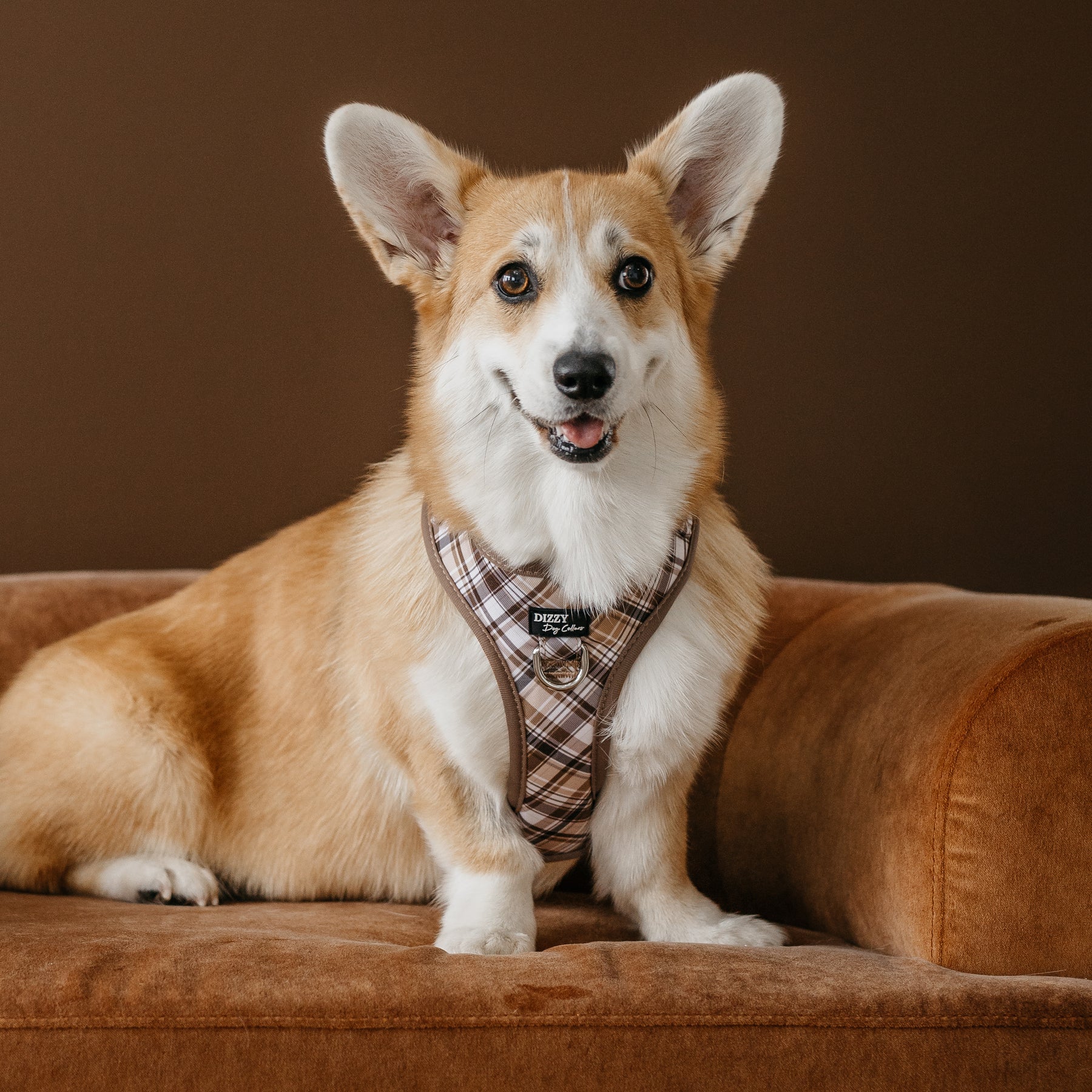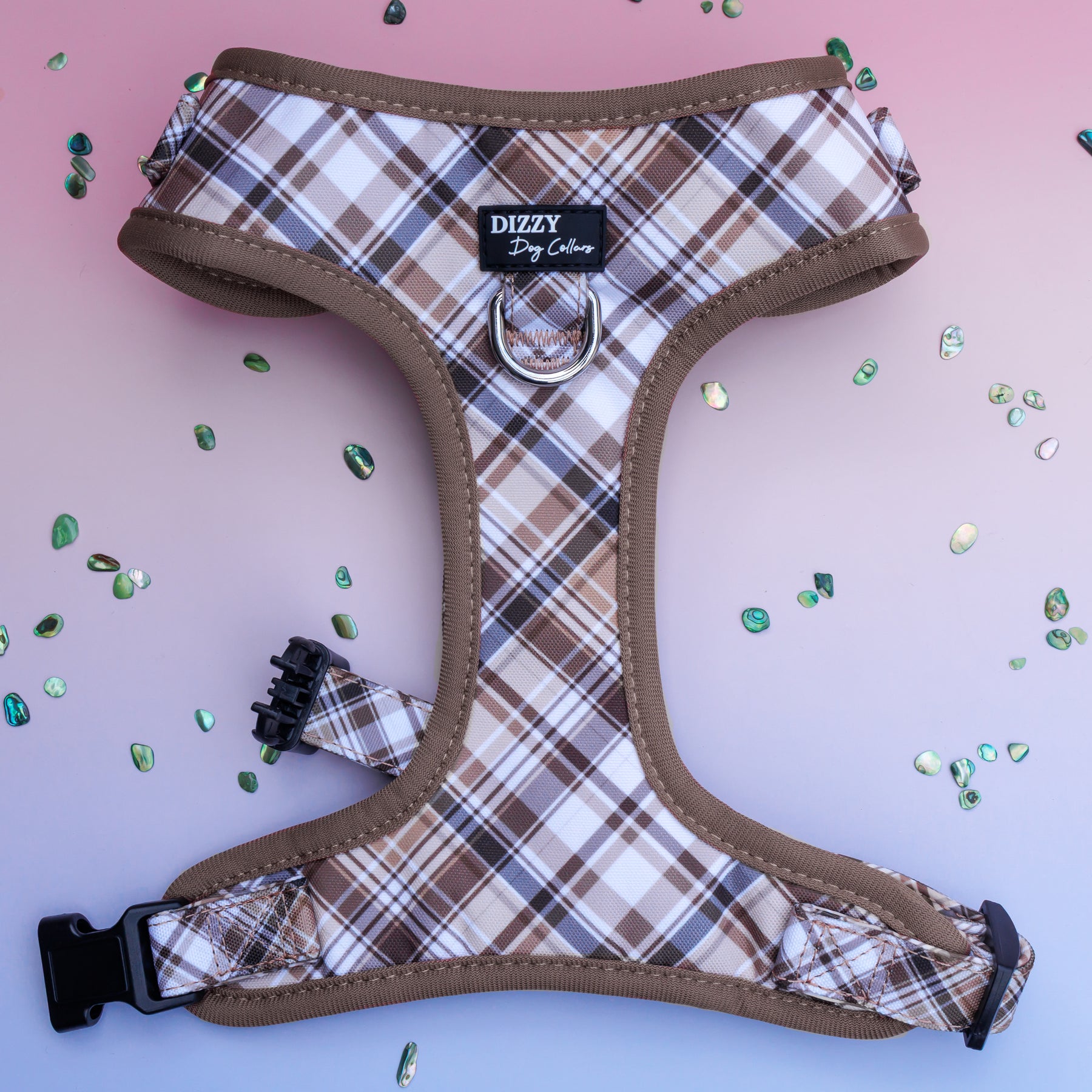 DOG HARNESS | Maplewood: Caramel & Brown Plaid | Neck Adjustable Dog Harness