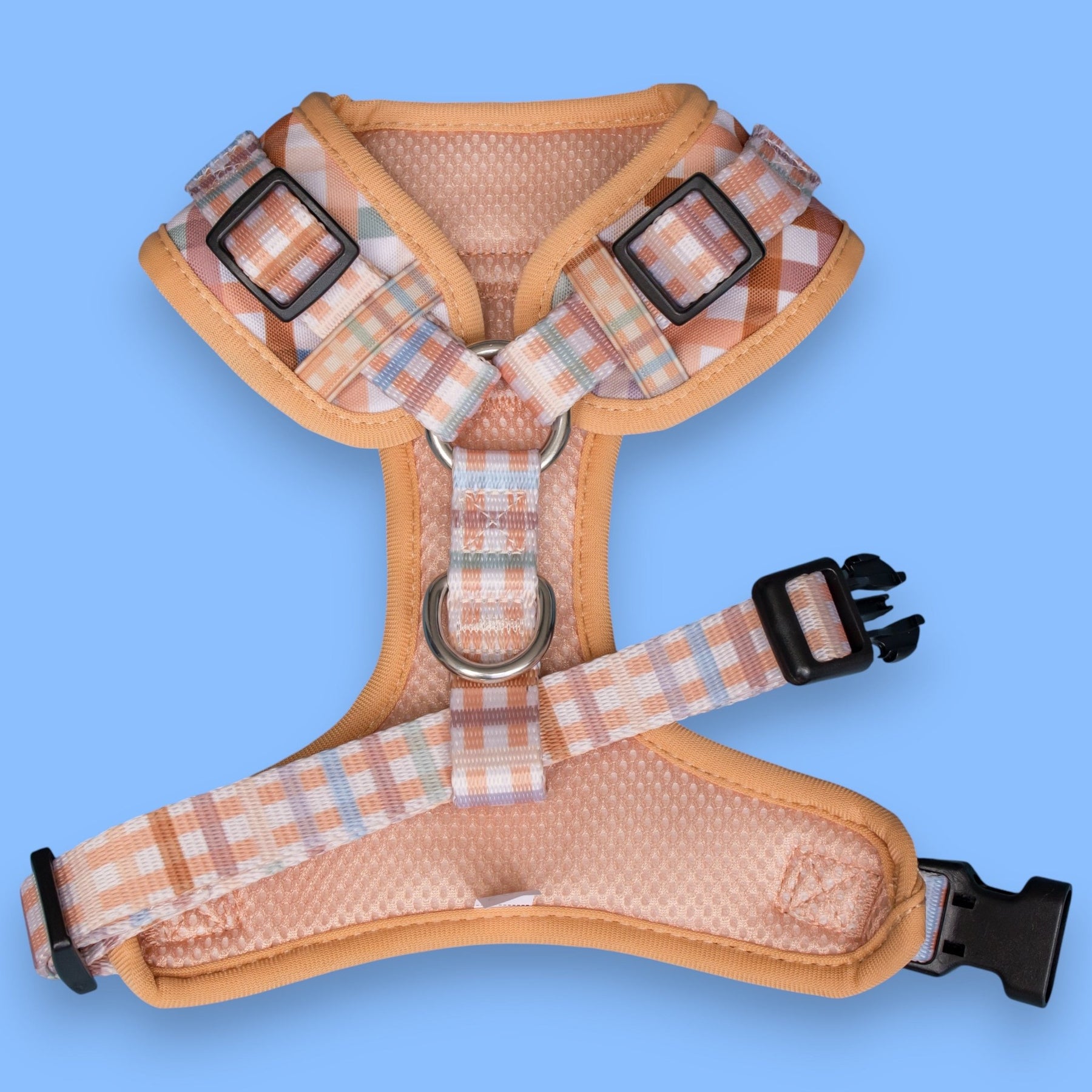 Timeless gingham meets premium durability. This adjustable dog harness combines classic style with practical design, perfect for dogs who deserve both comfort and sophistication.