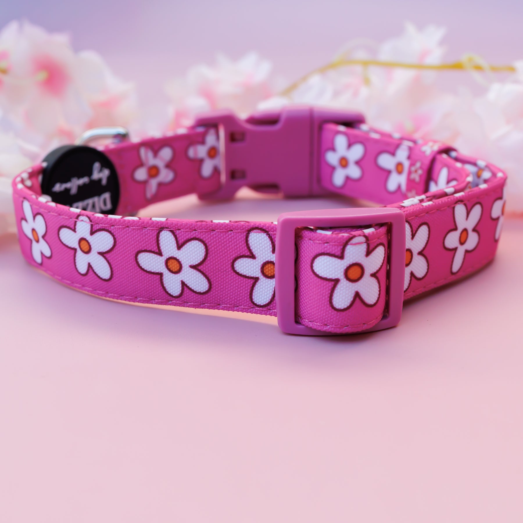 Make every walk magical with the Darling Daisy: Pink Daisy Dog Collar. Combining comfort, style, and durability, this collar is perfect for dogs who love to stand out.
