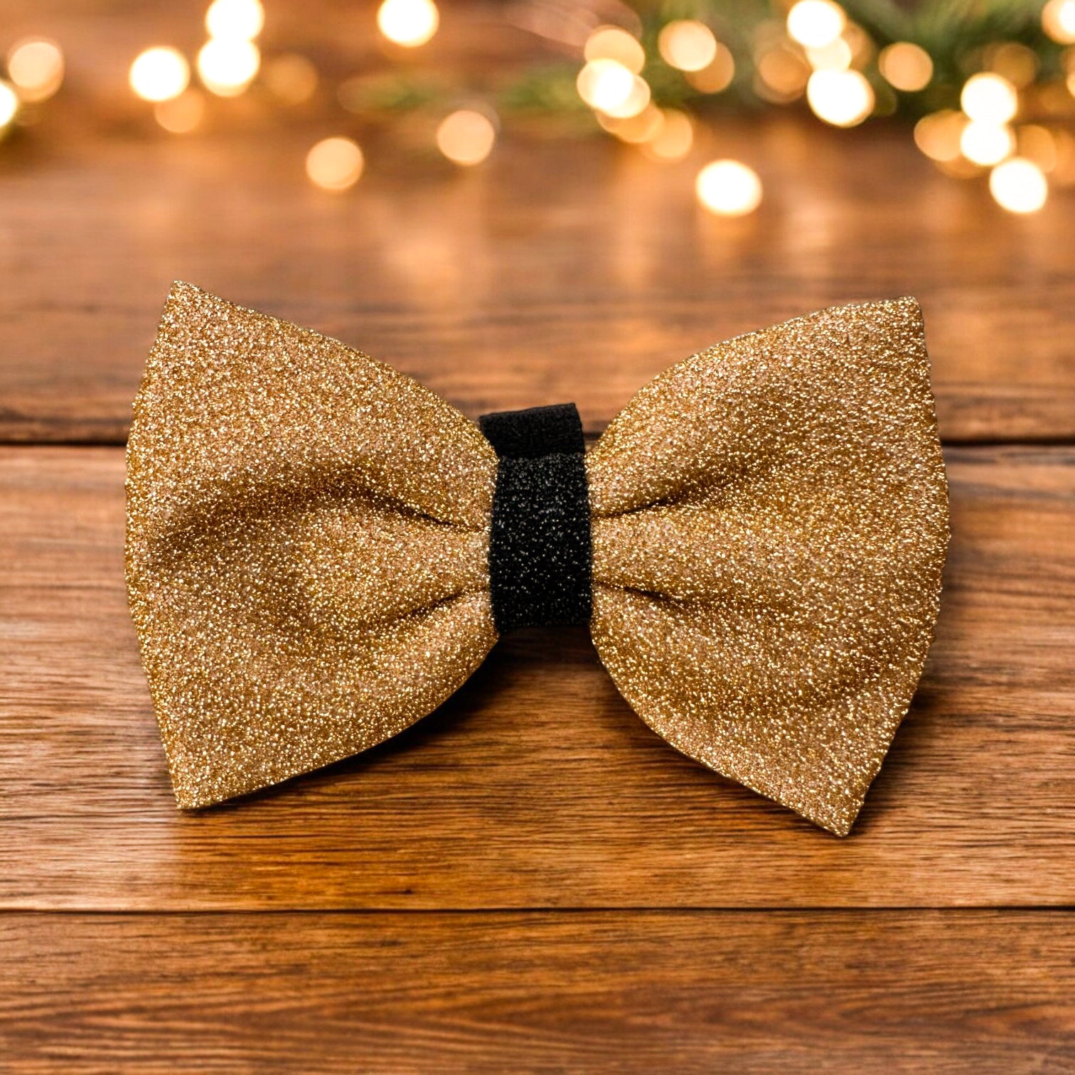 Pop the bubbly — your pup’s ready to celebrate in style! The Champagne Shimmer Bow Tie is the perfect mix of sparkle and sophistication, featuring a stunning gold glitter fabric paired with a sleek black centre for that timeless party look.