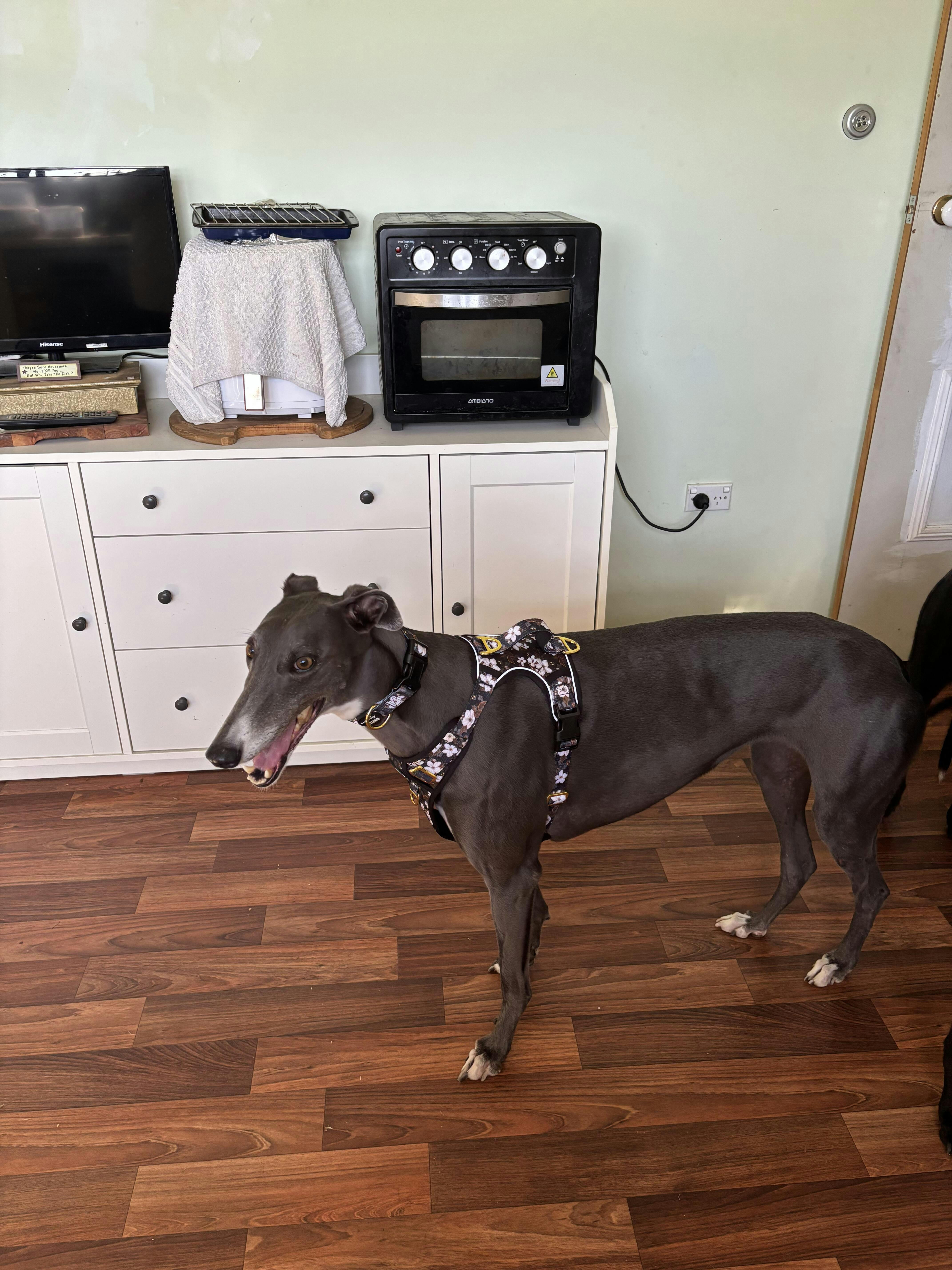Tilley looks so beautiful in her matching midnight cherry blossom harness, lead and collar.