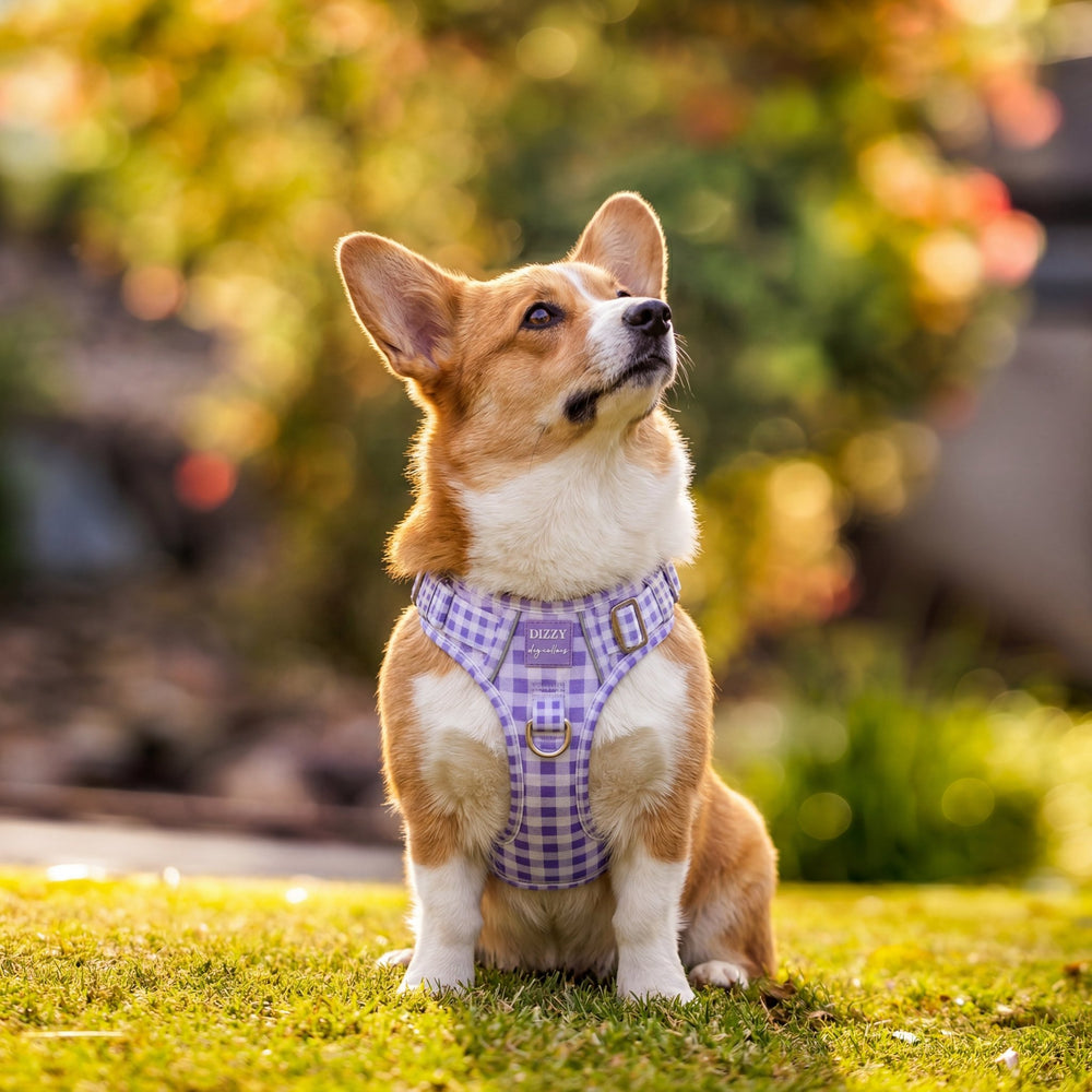 No Pull Harness with Handle | Lavender Gingham | Stainless Steel & Reflective | Step In