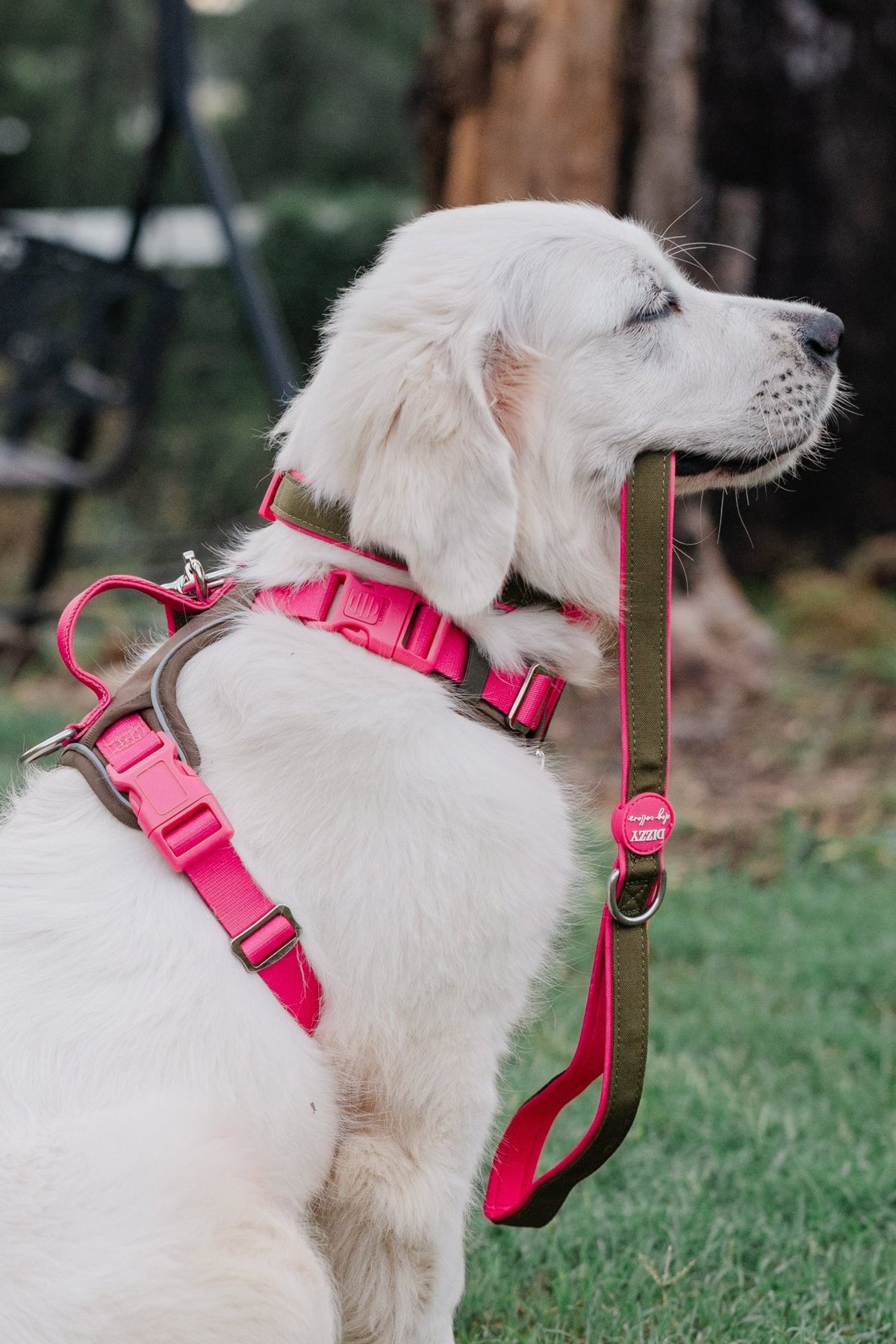 The Fig No Pull Dog Harness – Olive & Hot Pink