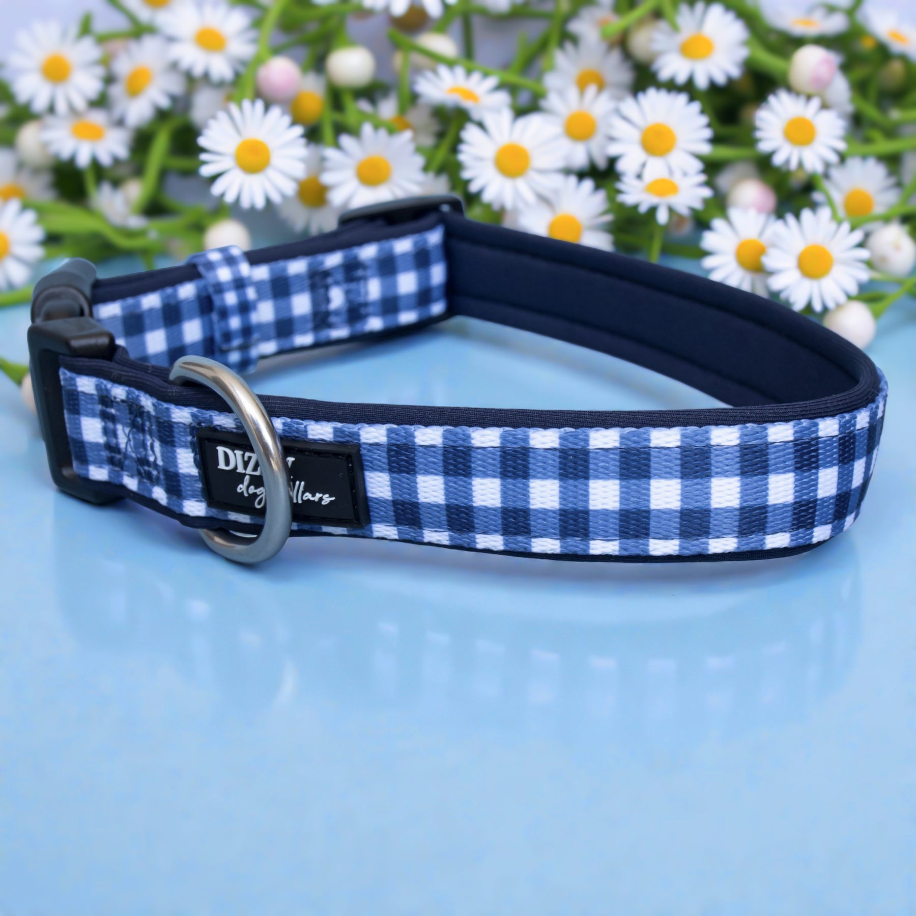 Navy Gingham Dog Collar | Neoprene Dog Collar | Stainless Steel