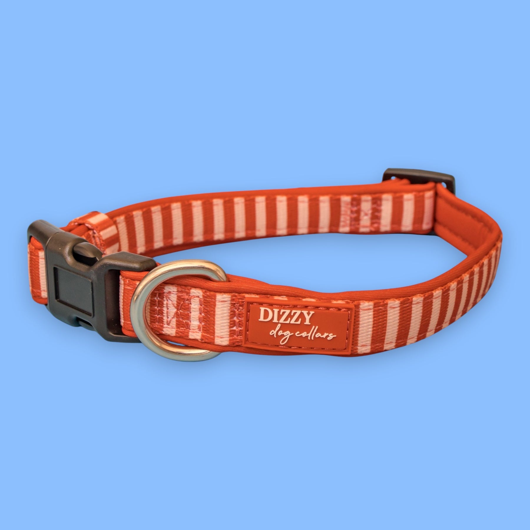 Warm rust tones meet classic stripes in this collar designed for active, water-loving dogs. The Rusty Ridge features durable poly-nylon blend fabric lined with soft padded neoprene for all-day comfort.